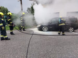 Zwischen den beiden Unwettereinsätzen, um 18:51 Uhr, wurden wir zu einem Brandeinsatz alarmiert. Ein PKW hatte bei noch geschlossener Motorhaube zu qualmen begonnen. Der PKW konnte mittels UHPS und HD erfolgreich gelöscht werden. Dieser Einsatz konnte nach einer Stunde und 15 Minuten beendet werden.