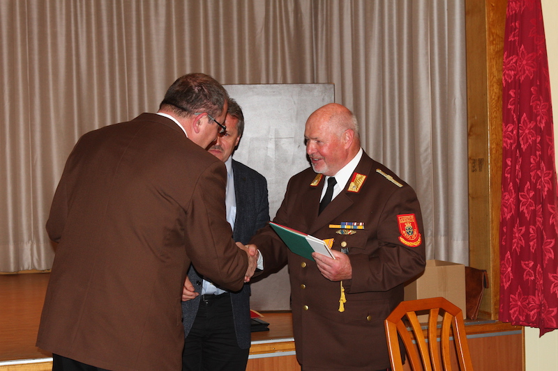 Als letzter Beschluss der Mitgliederversammlung wurde EABI Josef Ulrich zum Ehrenkommandant ernannt und Johann Schwarz der Dienstgrad Ehrenoberverwalter verliehen.