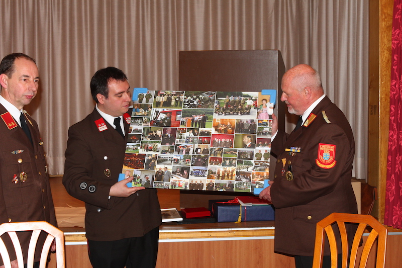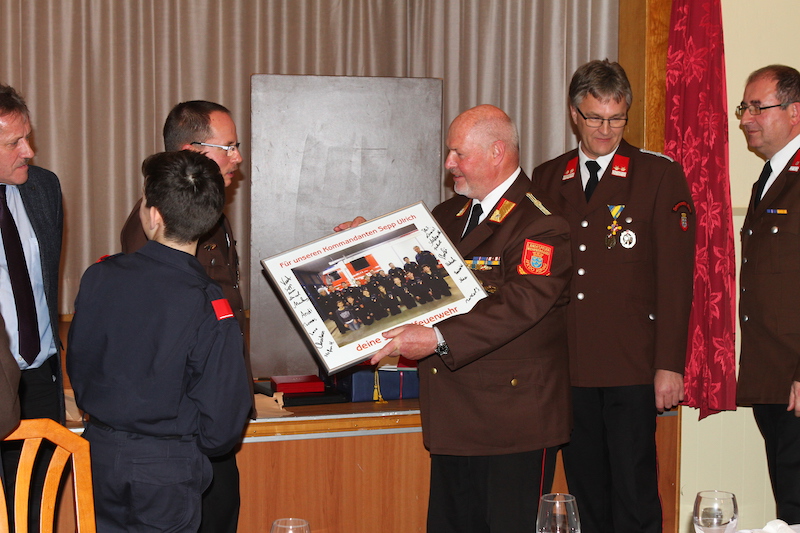 EABI Josef Ulrich erhielt im Zuge der Mitgliederversammlung eine Dankesurkunde seitens der Marktgemeinde Grimmenstein, das Verdienstzeichen dritter Stufe des Österreichischen Bundesfeuerwehrverbandes (überreicht durch LFR Josef Huber und HBI Rupert Ungersbäck), eine kleine Erinnerung der Feuerwehrjugend und eine Fotocollage von den Mitgliedern der FF Grimmenstein-Markt.
