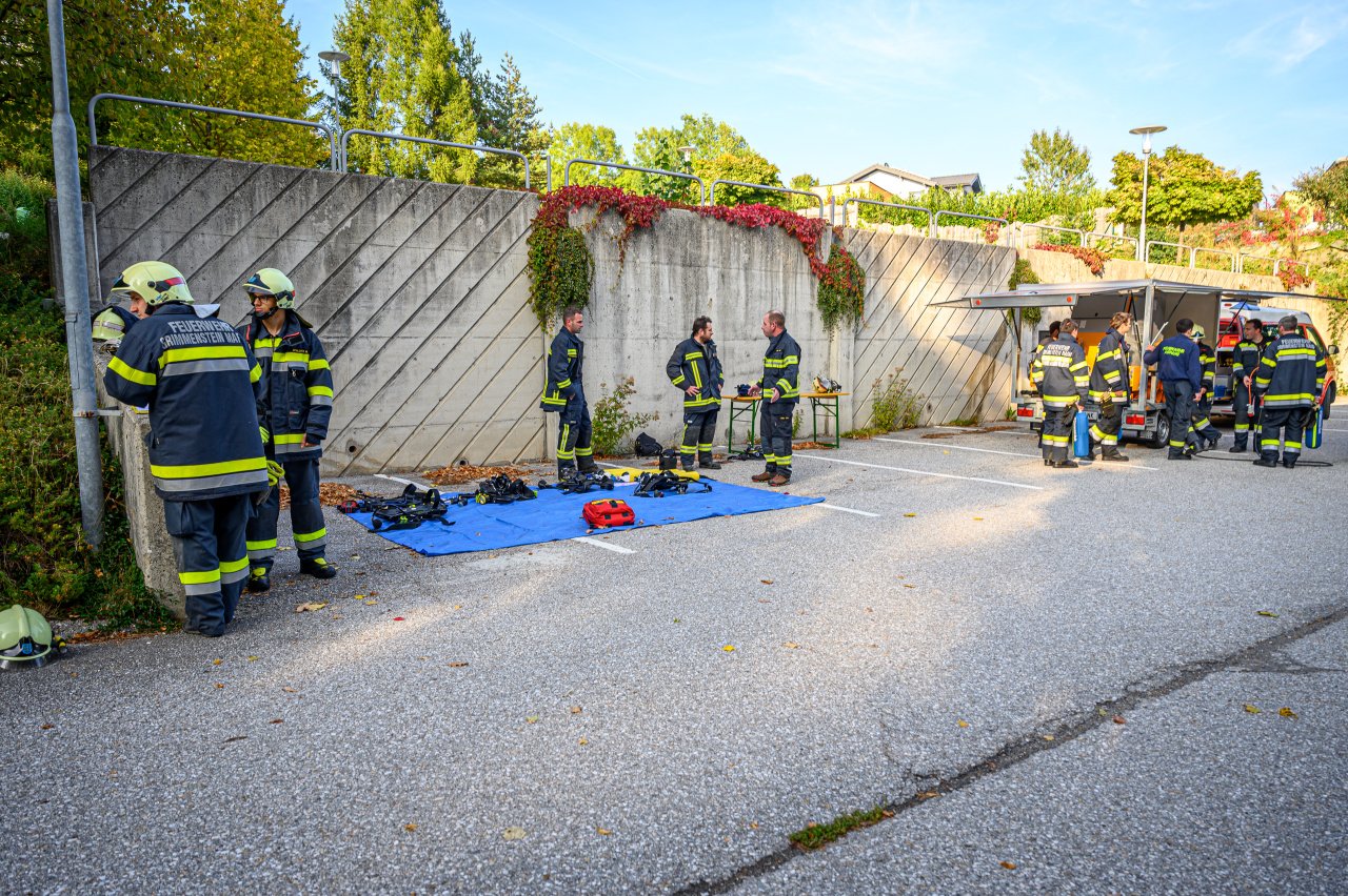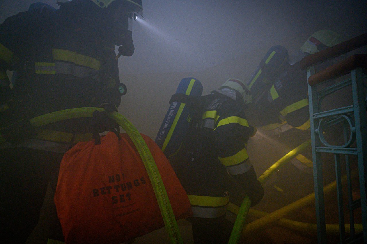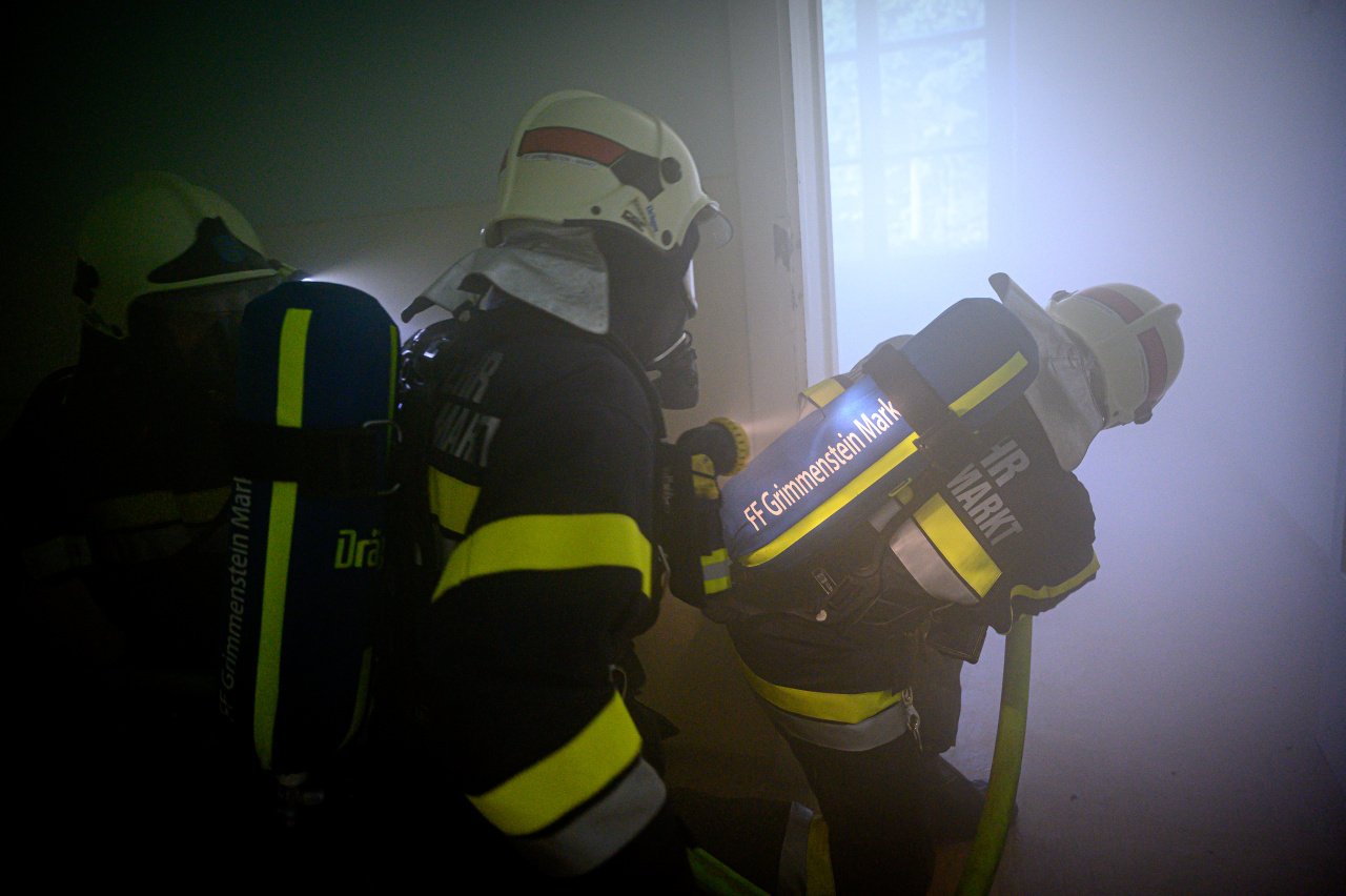 Übungsannahme war ein Dachstuhlbrand in einem Pflegeheim mit mehreren vermissten Personen. Durch die ersteintreffenden Einsatzkräfte wurde bereits starke Rauchentwicklung aus den Fenstern eines Pavillons, in dem früher das LKH Hochegg untergebracht war, wahrgenommen. Die ersten Atemschutztrupps begannen bereits nach wenigen Minuten mit dem Innenangriff und der Suche nach vermissten Personen. Aufgrund des dichten Rauchs stellte sich die Durchsuchung der Räume während des Innenangriffs als schwierig heraus, wenngleich die erste Person schon nach wenigen Minuten gerettet werden konnte. Da angenommen wurde, dass vorwiegend gehbehinderte Menschen aus dem Gebäude zu bringen sind, stellte sich die Rettung als anspruchsvoll dar.